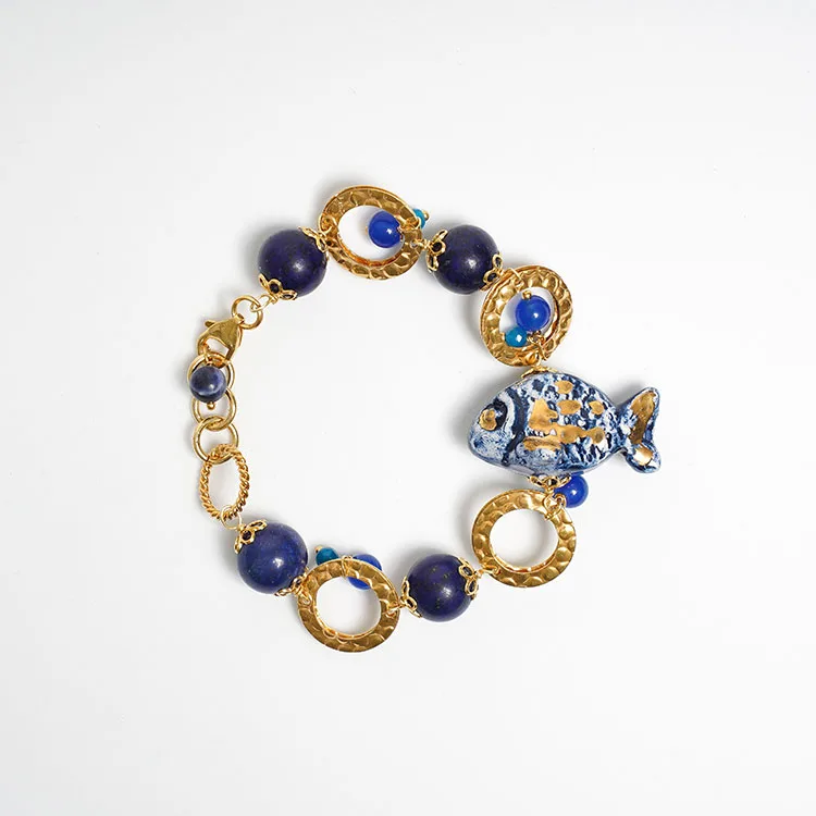 Bracciale con Cerchi, Pesce e Lapislazzuli